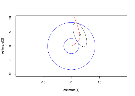 Consider a diagram with the true value of a parameter as the x-axis, and the estimate as the y-axis. We will color in all points that are non-rejected.